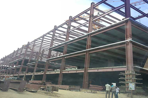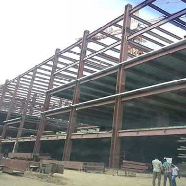 Fabrication of pre-assembled steel sections for faster site erection and reduced installation time.