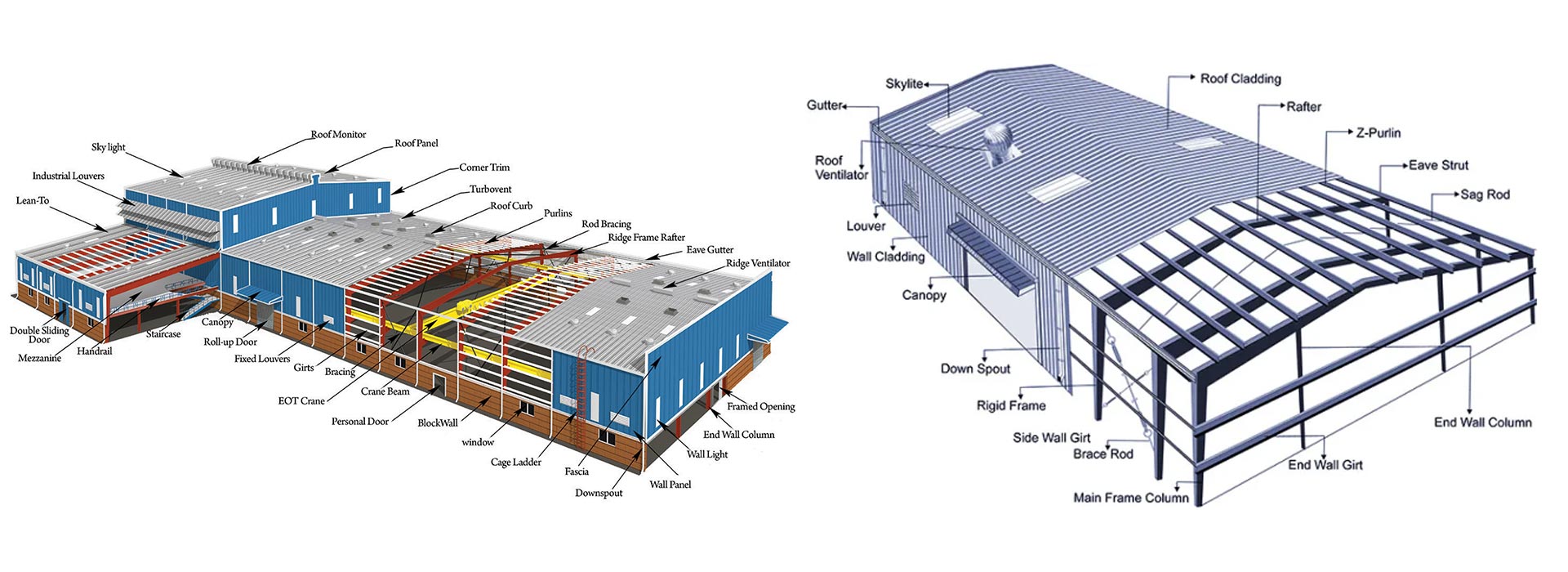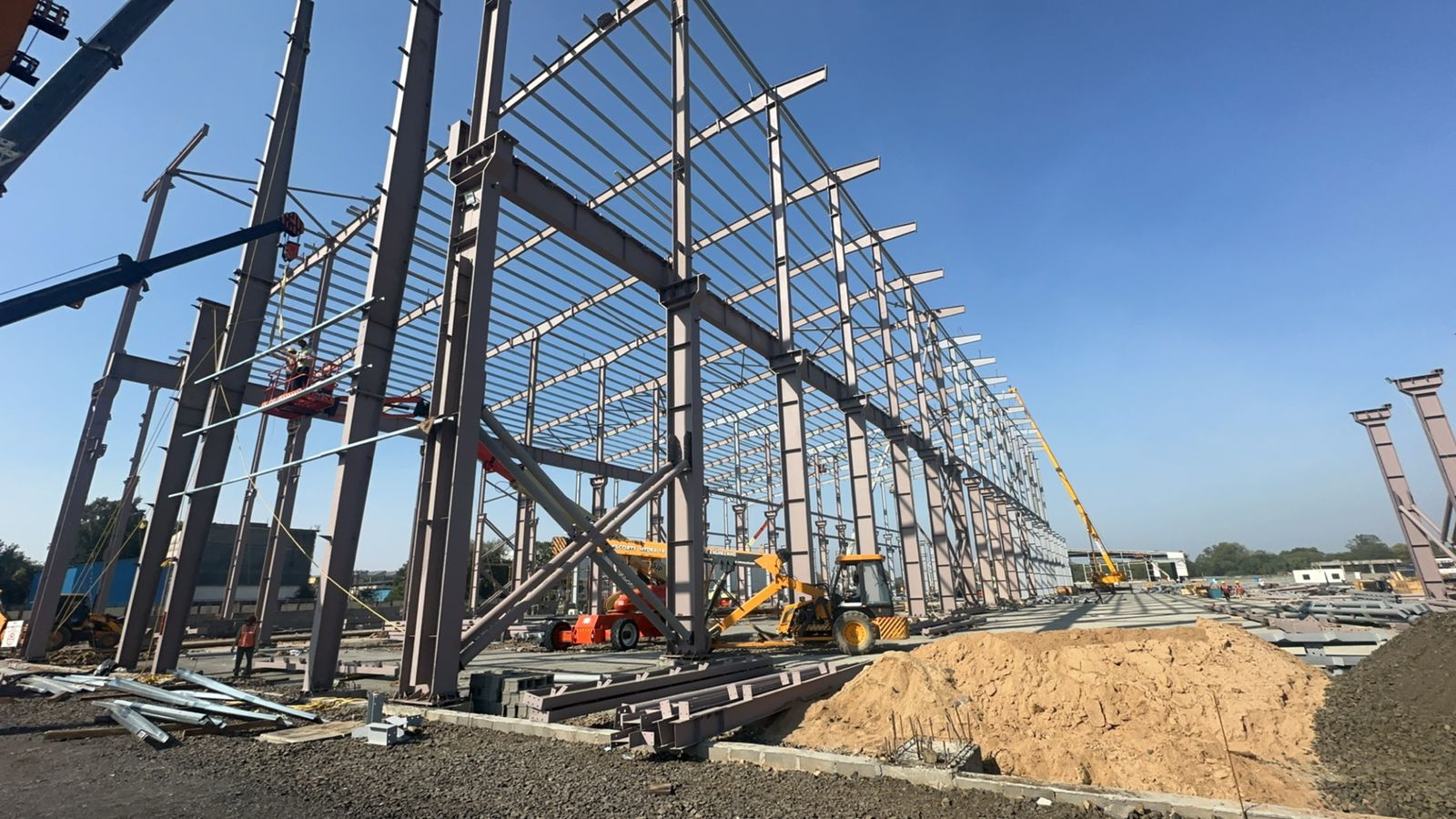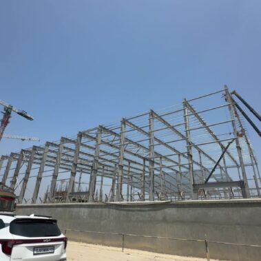 A Pre-Engineered Building is a steel structure designed using advanced software and pre-fabricated in a controlled factory environment. Each component—like columns, rafters, purlins, and cladding—is manufactured to precise specifications and transported to the site for quick assembly.