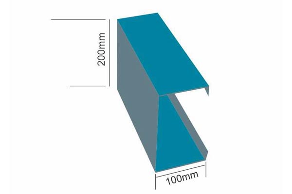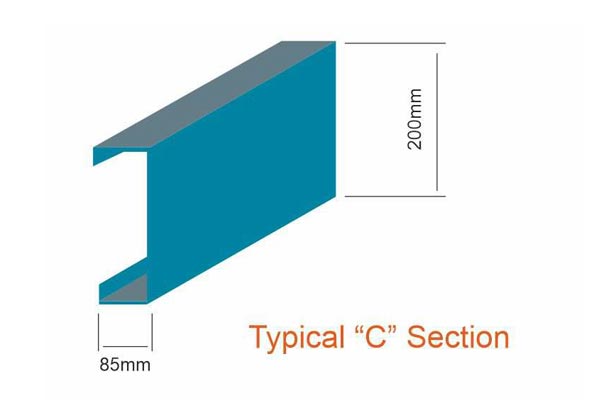 C-Sections are 200 mm deep with a 100 mm range. The ranges are perpendicular to the web and have a 24 mm stiffening lip.
